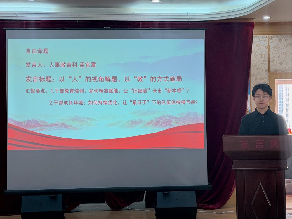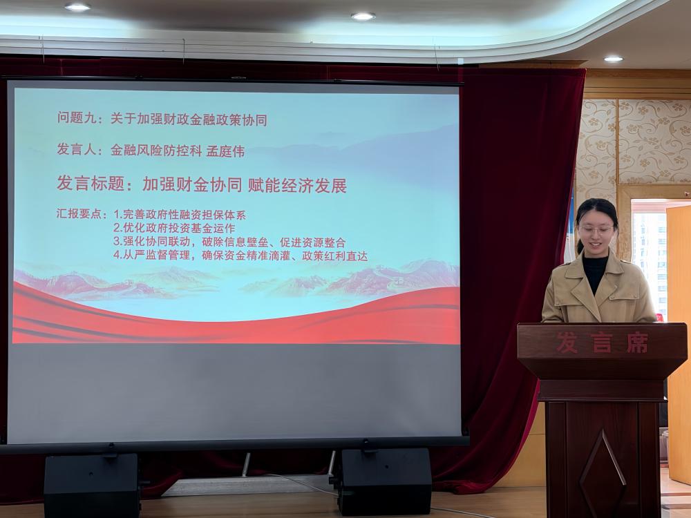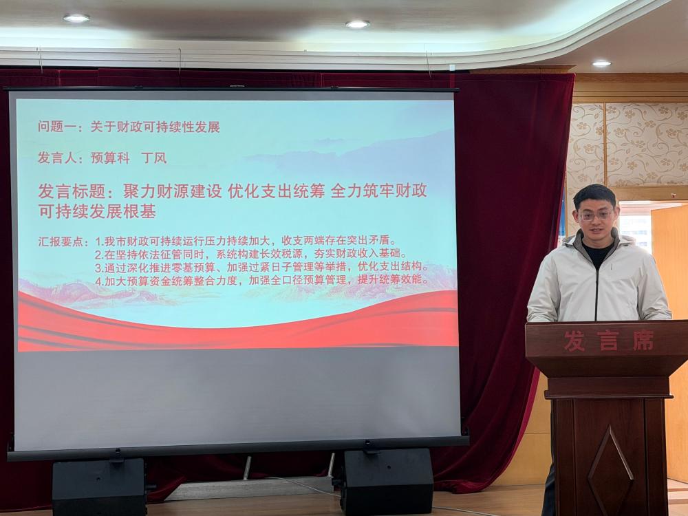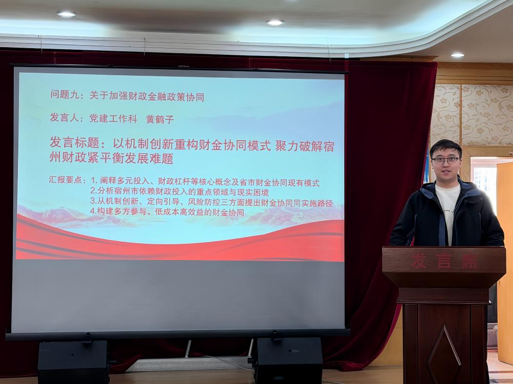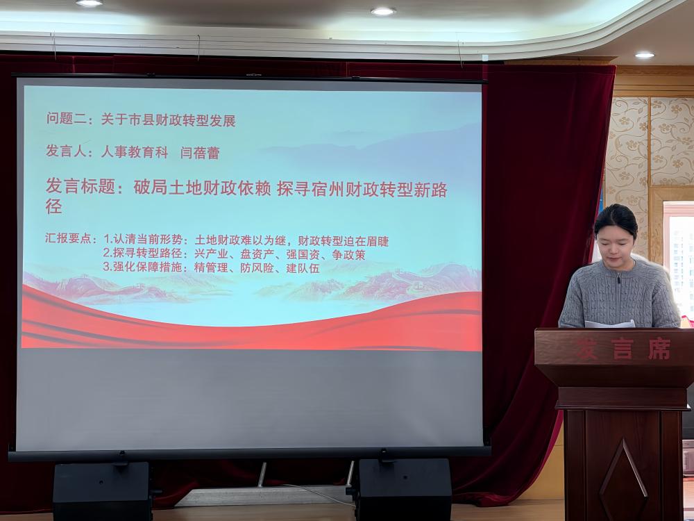 孟官震(人事教育科):本次发言从人事教育科视角出发,提出财政“十个问题”的破题关键在“人”。一是干部能力提升方面,建议教育培训既要选题精准——主动对接消费提振、财政金融协同等业务难点,又要形式灵活——引入案例复盘、跨部门授课,让旧经验长出真本领。二是成长环境营造方面,应坚持考核客观公正、推进轮岗常态化、强化选人用人导向、夯实人事数据基础,通过数据比对分析反哺培训与轮岗设计。只有把“人”的工作做细做实,才能让队伍在“紧日子”下保持精气神,最终为宿州财政高质量发展提供坚实的人才支撑。