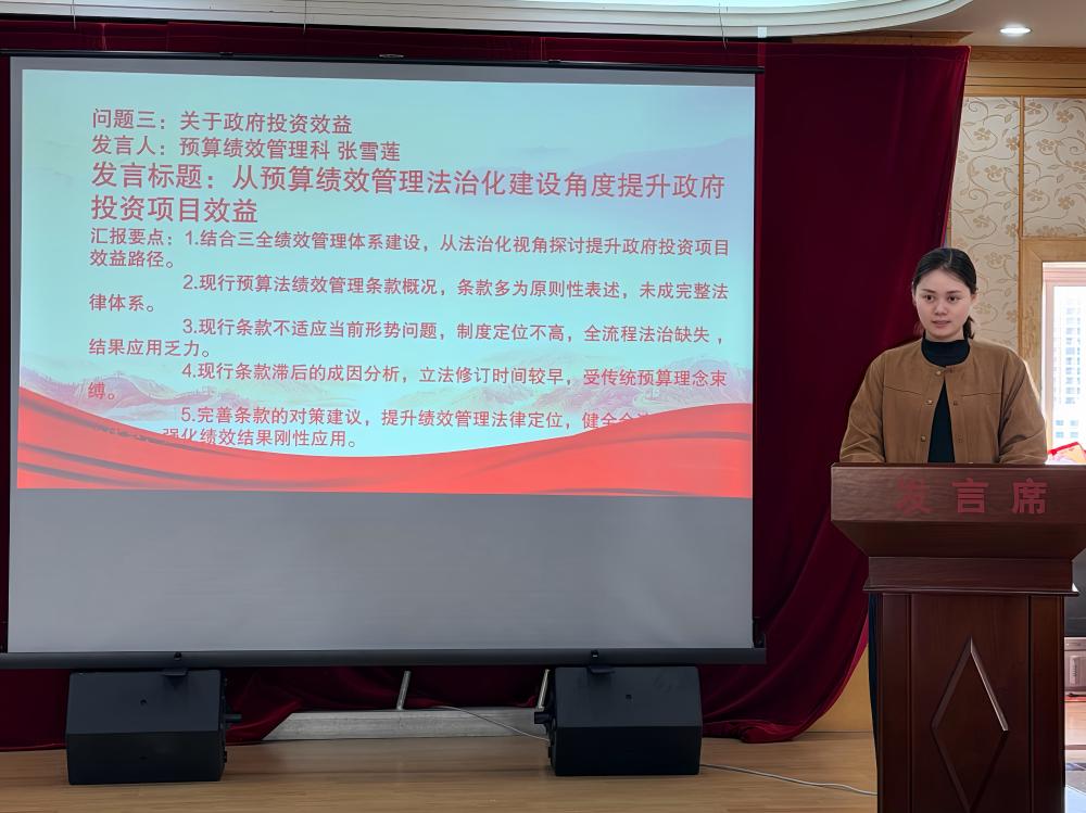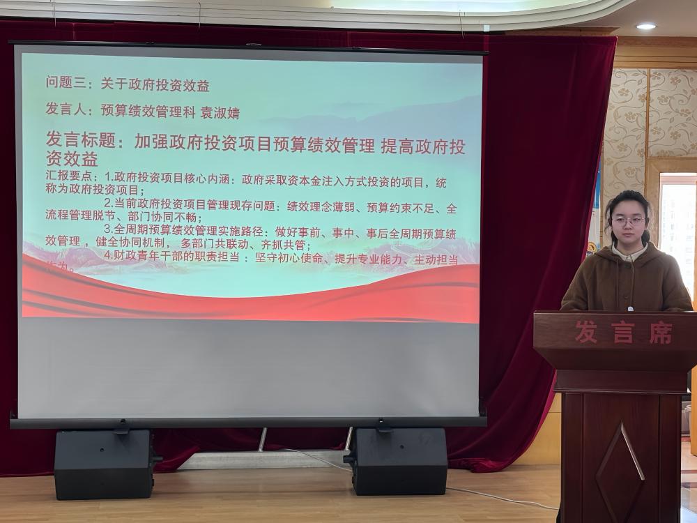 袁淑婧(预算绩效管理科):政府投资项目关乎民生福祉与财政资金效益,当前管理中仍存在重立项轻绩效、预算约束不足等问题,亟需推进全周期预算绩效管理。我们要紧扣事前严评估、事中强监控、事后重应用、健全协同机制的思路,落实“花钱必问效、无效必问责”理念。作为财政青年干部,更要坚守初心、钻研业务、主动担当,把严项目审核、抓实绩效监管,以高质量预算绩效管理规范投资行为、提升资金效益,为地方经济社会发展筑牢财政保障。