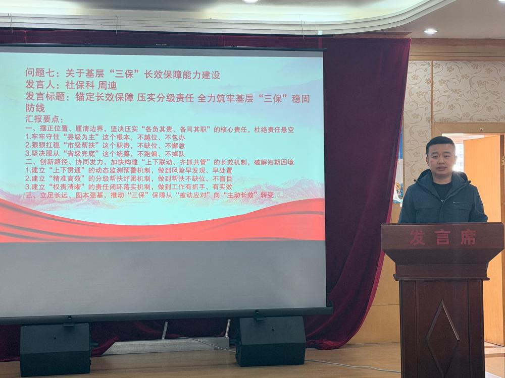 周迪(社保科):在本次青年沙龙上,我围绕基层“三保”长效保障能力建设这一核心议题,结合市级财政工作实际分享了认识与思路。基层“三保”是基层政权履职和社会稳定的底线,需从短期应急转向长期制度保障。市级财政将落实“县级为主、市级帮扶、省级兜底”责任,既引导县级强化自我保障,又精准帮扶薄弱县区,同时配合省级做好兜底工作。通过建立动态监测、精准帮扶、责任闭环机制,推动“三保”保障提质增效,筑牢基层财政稳固防线,助力全省经济社会高质量发展。