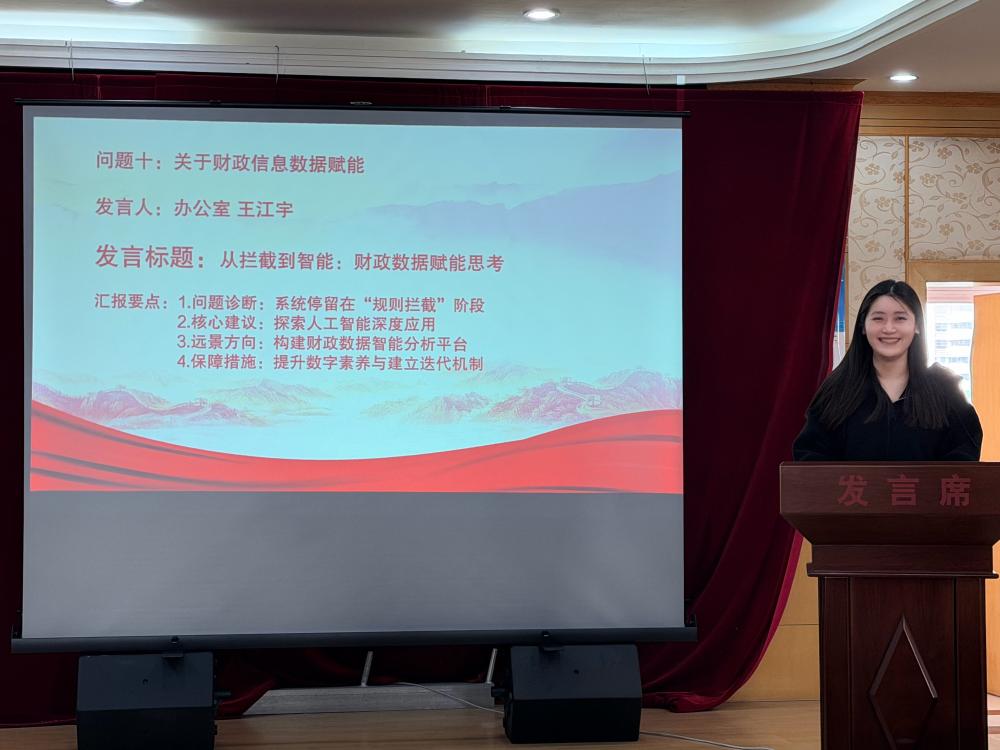 王江宇(办公室):本次发言从出纳工作实践出发,指出当前财政信息化系统仍停留在“规则拦截”阶段,存在支付预警一刀切、报销规则易规避、绩效评价缺核验、人工审核易疏漏等问题。建议积极探索人工智能深度应用:利用自然语言处理实现智能预警,引入OCR和规则引擎辅助报销审核,通过数据关联分析校验绩效真实性;并构建财政数据智能分析平台,汇聚多源数据,支撑政策评估、趋势预测与风险预警。同时,加强干部数字素养培训,培养复合型人才,建立容错迭代机制,真正实现从经验驱动向数据驱动转变,以问题为导向赋能财政管理提质增效。