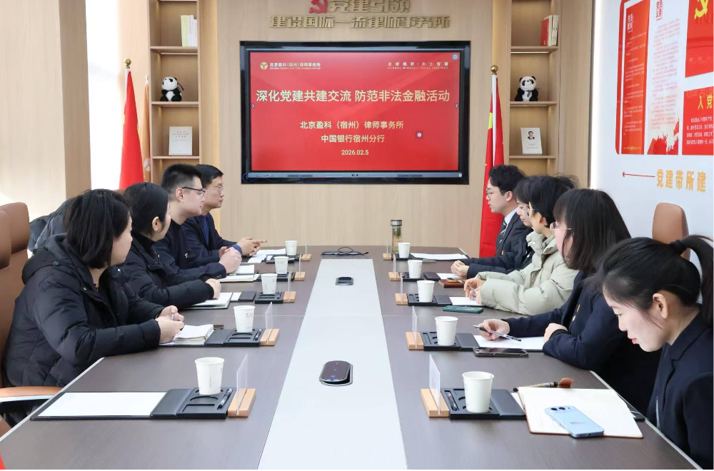 为推进防范非法金融活动宣传教育工作,2月5日,中国银行宿州分行走进北京盈科(宿州)律师事务所,开展“党建引领聚合力 共筑防线护平安”党建共建暨防范非法集资经验分享活动。