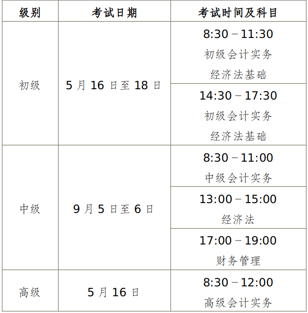 1.2025年12月31日前,各市会计考试管理机构公布明确本地区2026年度初级、高级资格考试科目、报名时间和考试时间等相关事项。